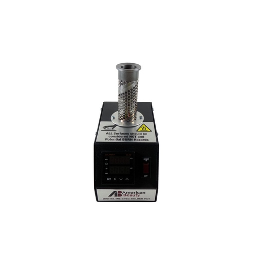 American Beauty Tools is making its long awaited entry into Digital, Mil-Spec Compliant Solder Pots. Available in Mini, 1 Pound and 2-1/2 Pound sizes, we have combined our reputation for rugged durability with the latest in precision temperature control technology. Easily exceeding the tightest of military standards.