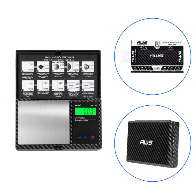 American Weigh Scales, AWS-1200-CF-BLK, Carbon Fiber Digital Pocket Scale, 1200g, Black