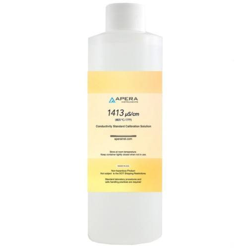 The Apera Instruments 1413 Standard Conductivity Calibration Solution is made of high-purity chemicals standardized against NIST certified references at 25°C (77°F). It's ideal for the calibration of all types of conductivity meters. Since conductivity value is affected by temperature the temperature & conductivity reference table is provided on the bottle labels for y reference. All the solutions are double-sealed not subject to the DOT shipping restrictions and have a 1-year shelf life. The expiration date is printed on the bottle.at support.aperainst.com; The Certificate of Analysis can be acquired by requests. Note: Store at room temperature and away from direct sunlight. Keep the bottle tightly closed when not in use. Keep out of reach of children.