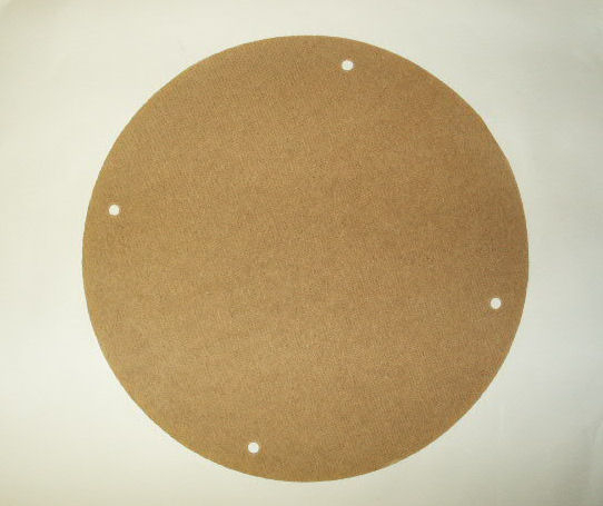 1/8" thick pressboard with 4 diametrically opposed 9/16" holes for securing with pins and washers