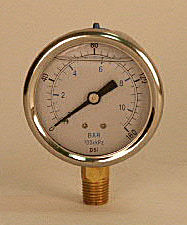 Stainless Steel Case - Brass Lower Connection - Liquid Filled. 2 1/2" Face / 1/4" Connection