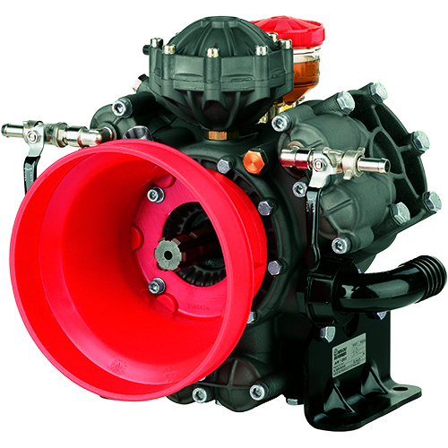 Liquid fertilizer and pesticide low pressure diaphragm pump. Three semi-hydraulic diaphragms. Single male cardan shaft.. For use in the gardening or professional agricultural sectors, base-mounted in combination with PTO's, electric motors or internal combustion engines for gardening, and small sprayers for medium-pressure pesticide treatments in gardens, greenhouses, orchards or vineyards.