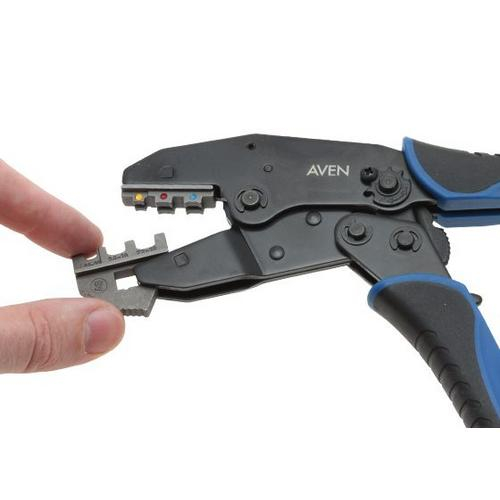Replacement die for Aven tool frame 10195. Die has color code for easy size identification and can be easily inserted withoutany tools. This die is designed for crimping miniature insulated terminals AWG 26-22/24-18/22-16 (0.1-0.5/0.25-1/0.5-1.5mm2)