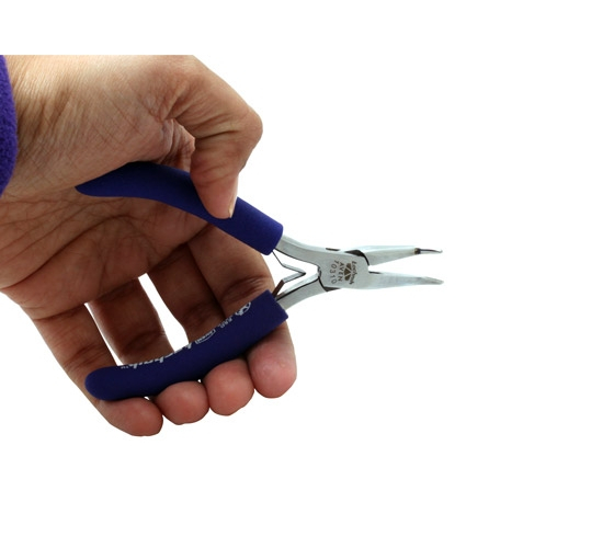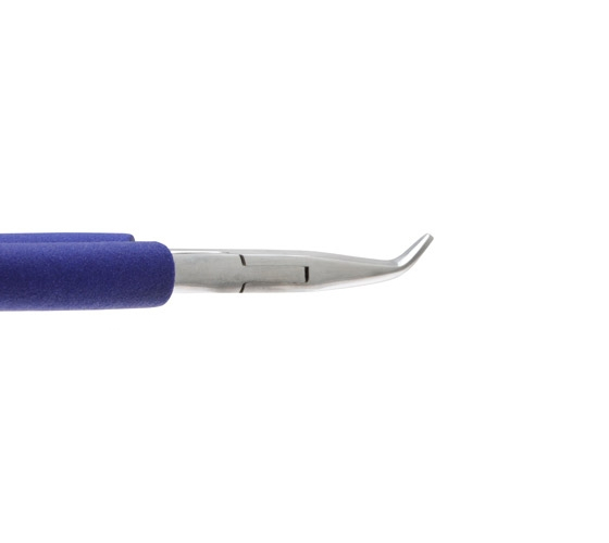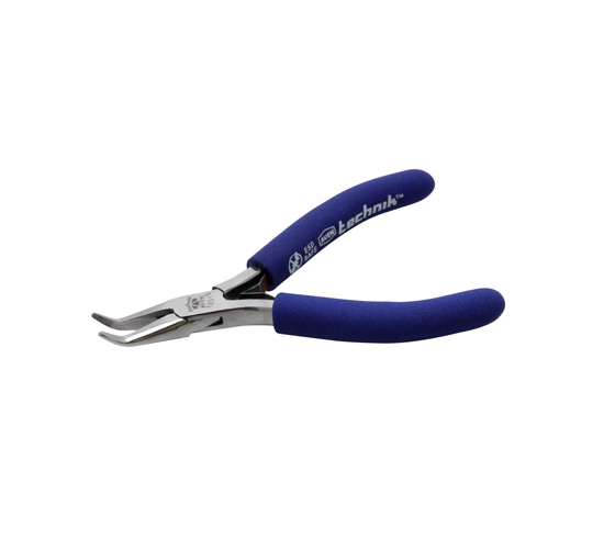 Aven, 10310, Technik Series 4.5" Stainless Steel Bent Nose Pliers with ESD Safe Grip & Serrated Jaws