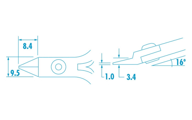 Taper head cutters are very popular. The pointed head allows for increased cutting access yet has sufficient strength to avoid breakage when used within its capacity. Relieved head provides allows easier access in tight confined areas. Accu-Cut cutters are renowned for their superior cutting edge technology. Cutting edges have a hardness of 63-65 HRC for exceptional durability and are sharpened cut crisply at the very tip and along the entire length of the cutting edge. Unique joint design also ensures that the cutting edges stay in perfect alignment for superior performance. Grips are ESD Safe and ergonomically designed to exceptional comfort to increase operator productivity.
