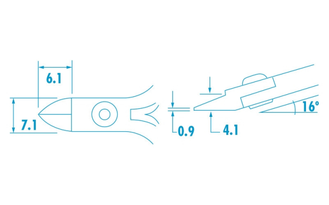 Miniature oval head cutters are used for fine cutting work such as with SMT or work under a microscope. Accu-Cut cutters are renowned for their superior cutting edge technology. Cutting edges have a hardness of 63-65 HRC for exceptional durability and are sharpened cut crisply at the very tip and along the entire length of the cutting edge. Unique joint design also ensures that the cutting edges stay in perfect alignment for superior performance. Grips are ESD Safe and ergonomically designed to exceptional comfort to increase operator productivity.