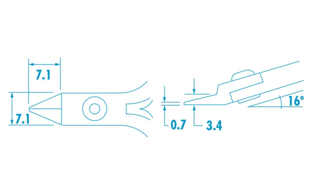Miniature taper relief cutters are used only for exceptionally fine cutting work. Usually access to the cutting area is difficult, requiring the very low profile of this cutter with full relief. Accu-Cut cutters are renowned for their superior cutting edge technology. Cutting edges have a hardness of 63-65 HRC for exceptional durability and are sharpened cut crisply at the very tip and along the entire length of the cutting edge. Unique joint design also ensures that the cutting edges stay in perfect alignment for superior performance. Grips are ESD Safe and ergonomically designed to exceptional comfort to increase operator productivity.