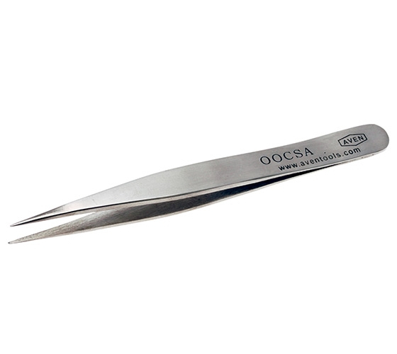 Aven, 18032-CS, 3.5" OO Pattern Heavy Duty Carbon Steel Tweezers with Strong Flat Edges
