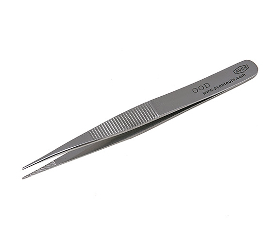 Aven 18036-CS 4.7" OOD Pattern Flat Edges Tweezers, (Pack of 10 pcs)
