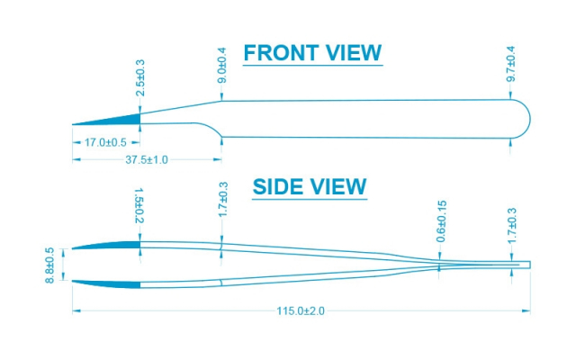 Pattern 5A oblique fine points for greater visibility. Length: 4-1/2" (115 mm) Stainless Steel Construction that is Anti-Magnetic and Anti-Acid.