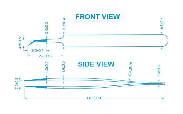 Pattern 5B super micro, high precision bent tips provide maximum visibility. Length: 4-1/4" (110 mm) Stainless Steel Construction that is Anti-Magnetic and Anti-Acid.