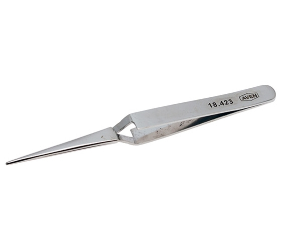 Aven 18423 4.5" Short Straight Narrow Tip Self Locking Tweezers, (Pack of 10 pcs)
