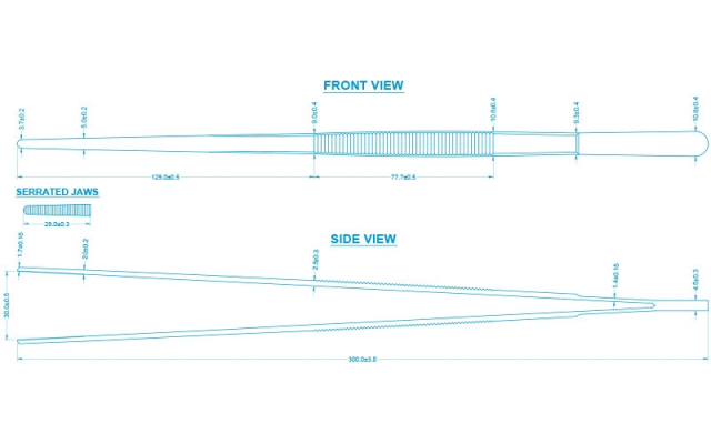 Made of stainless steel, these long, serrated-tip forceps are ideal for bending, separating and removing small items.