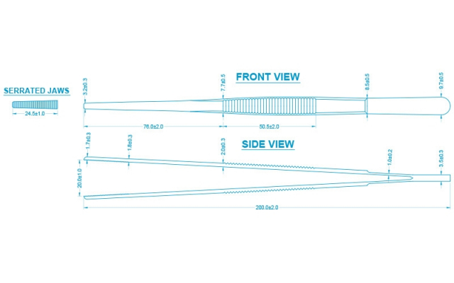 Made of stainless steel, these long, serrated-tip forceps are ideal for bending, separating and removing small items.