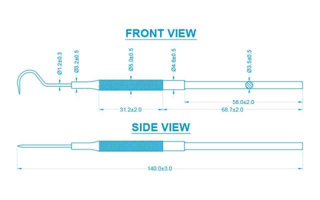 Needle sharp for precision work around delicate circuits and components. Length 146 mm. Curved needle point with knurled handle for extra grip.