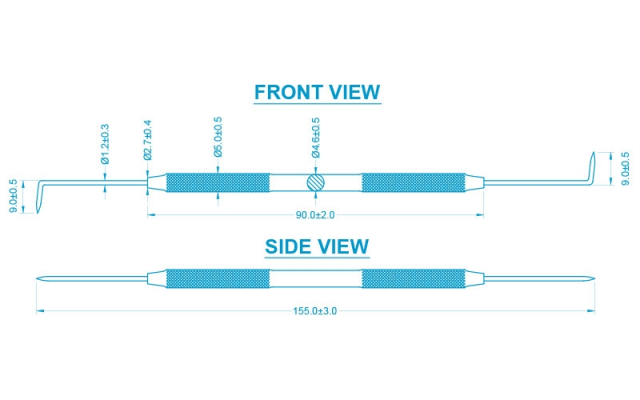 Probe Double Sided with bent and curved points. Length 165 mm