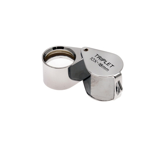 This 10x eye loupe features a distortion free, three piece, bonded lens made from optical glass. Color corrected with a working distance of 25.4 mm (1"), this Chrome finished loupe easily folds up to protect the lens when not in use.