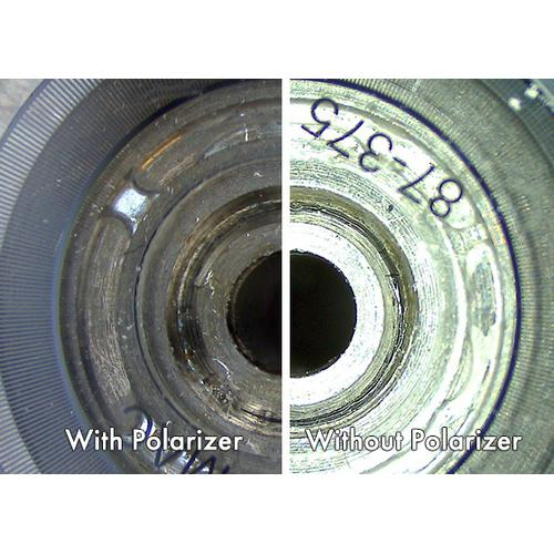 The polarized ring light significantly reduces the glare from shiny objects, allowing operators to see details that could otherwise be obscured or washed out.