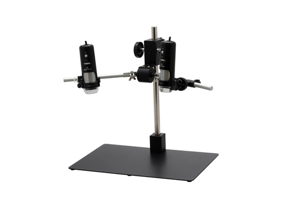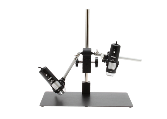 The Dual View Stand allows you to mount two Mighty Scopes. Plug these Mighty Scopes into your PC and use our MicroViewer Software (supplied with the Mighty Scope) to view two images at the same time. Excellent for viewing a specimen from different angles. The stand offers articulating arms that allow up and down, back and forth movements and rack and pinion focusing for fine adjustments.