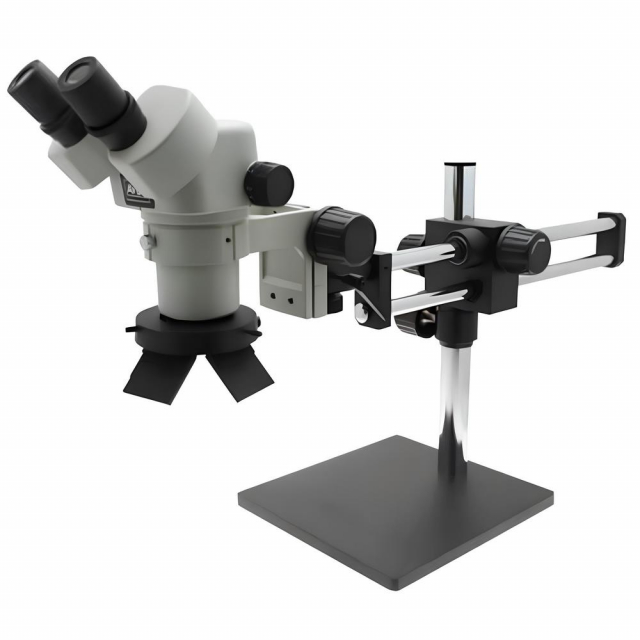 SPZ-50 Stereo Zoom Microscope with OLED Ring Light and Double Arm Boom Stand