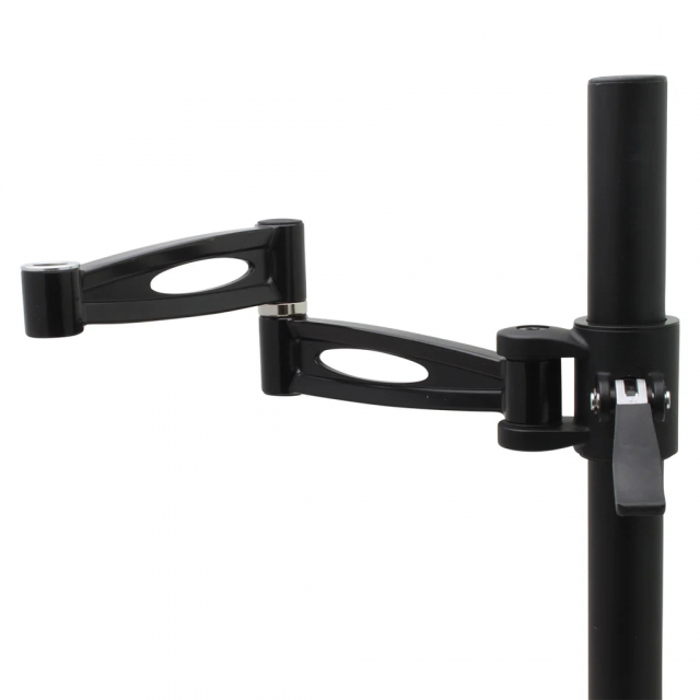 Designed for use with microscope systems. Features a 415mm (16.33in) articulating arm with two articulating joints on a 450mm (17.7in) post. Includes a built-in table clamp with dual locks for added stability. The arm can be raised/lowered and rotated to the ideal position.