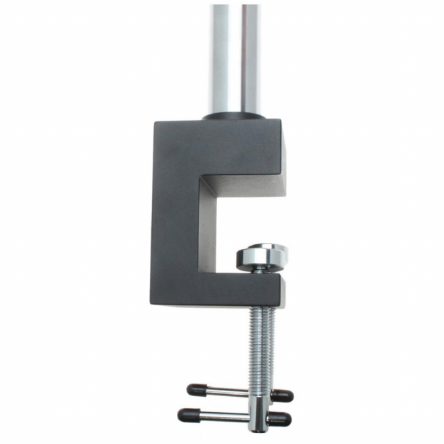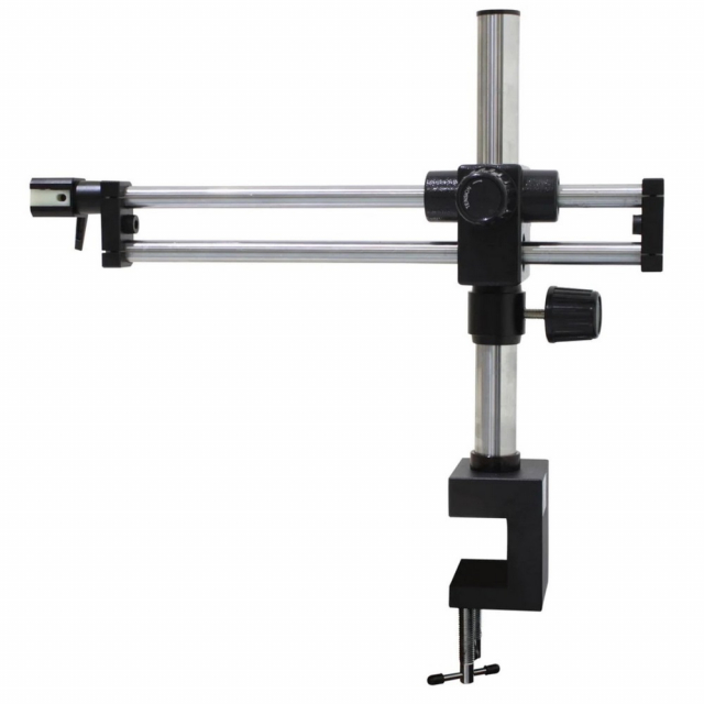 The double arm boom stand gives operators the ability to smoothly scan and position the microscope to the required position. Includes a built-in table clamp with dual locks for added stability. The arm can be raised/lowered and rotated to the ideal position.