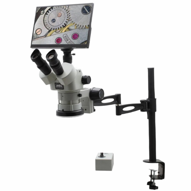 Aven, 26800B-710, SPZV-50 Stereo Zoom Microscope 6.7x - 50x on Compact Articulating Arm Stand with Mighty Cam Eidos Camera/Monitor