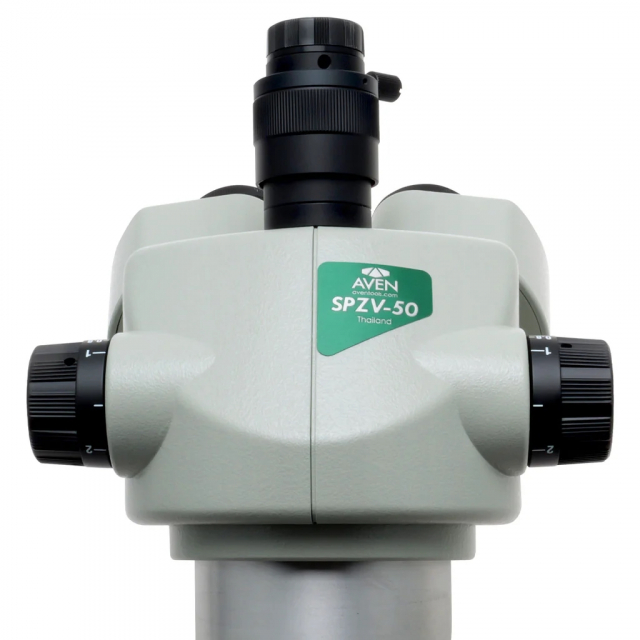 Aven, 26800B-725, SPZV-50 Stereo Zoom Trinocular 6.75x to 50x Microscope on Post Stand with Eidos Camera, Integrated LED Light, and LED Backlight
