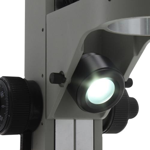 The overhead LED light shines bright light on the subject below the microscope. The light can be tilted to the desired angle