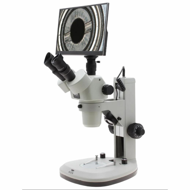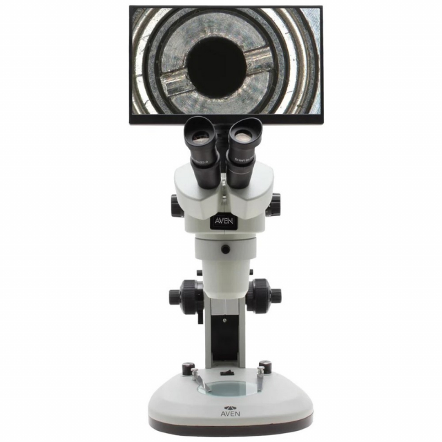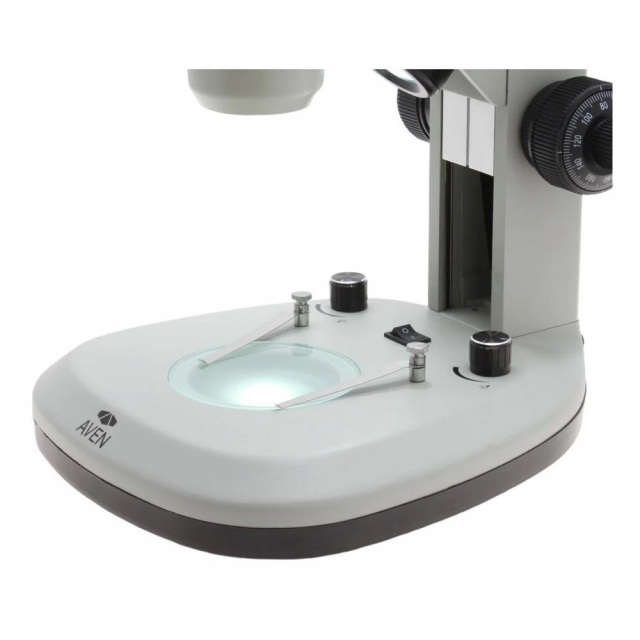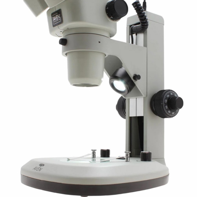 Aven, SPZV50-506-260, Trinocular Stereo Zoom Microscope 6.7x - 50x on Track Stand with Top and Bottom LEDs