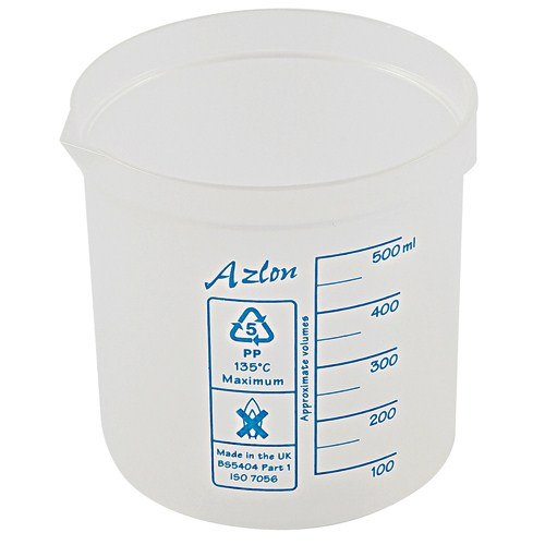 Azlon 522085-0500 500ml Polypropylene Square Ratio Graduated Beaker