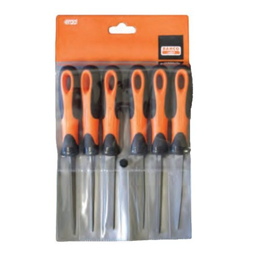 Bahco 1-476-04-3-2 file set comprises six devices intended for filing & polishing tasks with high-quality output. Each element from the given set possesses a specific handle developed with compliance to ERGO™ process, which means comfortable and reliable gripping and reduction of fatigue. The components of this set are supplied with a special pouch.