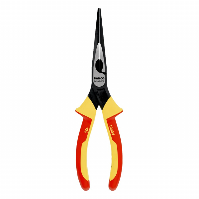Bahco, 2430S-200, Ergo 200 mm Snipe Nose Plier with Insulated Dual-Component Handles and Phosphate Finish