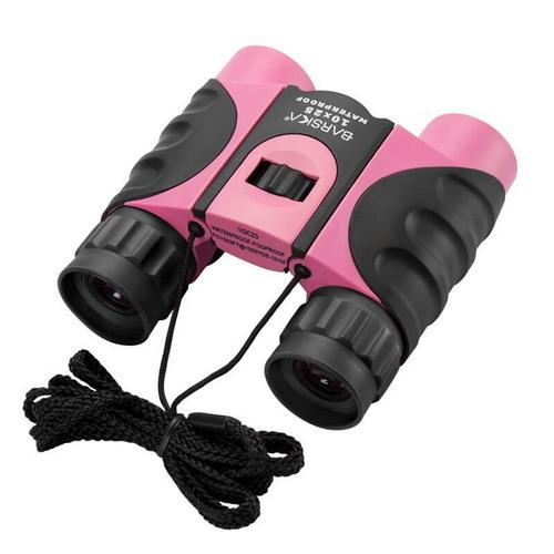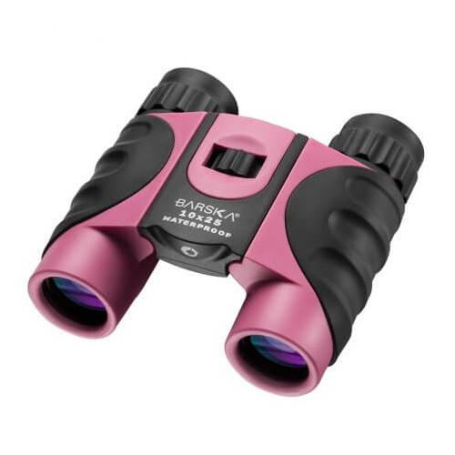 Barska's Pink 10x25 Waterproof Binoculars are a handy, waterproof optic that can be useful for a wide range of outdoor activities in all weather conditions. The fixed 10x magnification is ideal for mid-range bird watching, hiking, or sightseeing, and lightweight enough to hold steady. Fully coated optics transmit bright clear images throughout the entire focus range, and the pink armored housing helps protect your optics from moisture and light shock. The ergonomic design and complementing features of this binocular delivers a comfortable user-experience and quality images.