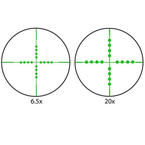 The 6.5-20x40 IR Tactical Riflescope from Barska is a perfect choice for serious shooters and hunters who are looking for as much control as possible for extreme type shooting. Boasting a fast focus eyeball and side parallax settings, this Tactical Scope has been designed and engineered for accuracy, reliability and durability. This scope offers a 1 inch single tube construction with anIlluminated Mil-Dot Reticle in the first focal plane. Locating the reticle in the first focal plane allows the size of the pattern to increase as the magnification is increased. This is preferred by many tactical shooters for use as a point of aim and as a means of measurement. The Tactical Rifle Scope's Single tube construction provides high recoil capability with larger calibers.