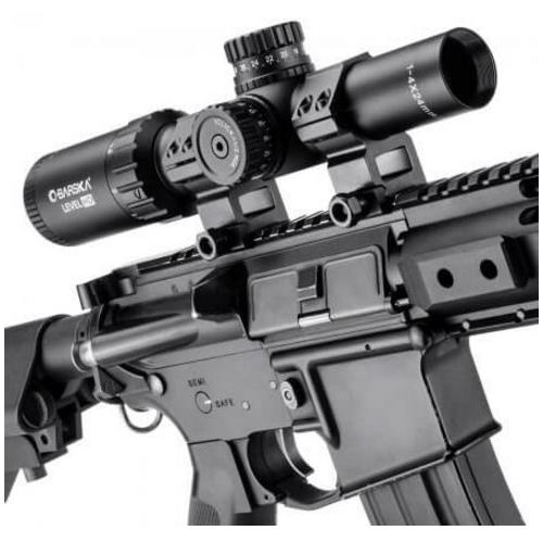 The 1-4x24 Level HD Rifle Scope by Barska is an advanced scope designed for accurate close to mid-range targeting with both hunting and tactical rifles. The 1-4x24 Level HD utilizes an HRS .223 bullet drop compensation (BDC) reticle, which can be used to quickly estimate range and elevation adjustments when shooting .223 ammunition. This Illuminated HRS Quick Shot Reticle (IR) can also be switched to either a red or green reticle with adjustable brightness settings for accurate targeting in any lighting situation with impressive viewing clarity. Scope rings sold separately.
