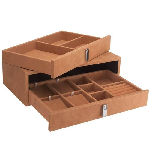 Keep valuable jewelry organized with the Jewelry Storage Drawer Set by Barska. Elegant tan suede-lined drawers keep your jewelry organized while providing additional protection from scratches. This suede drawer set pairs nicely with any of Barska's fireproof jewelry safes, sold separately.