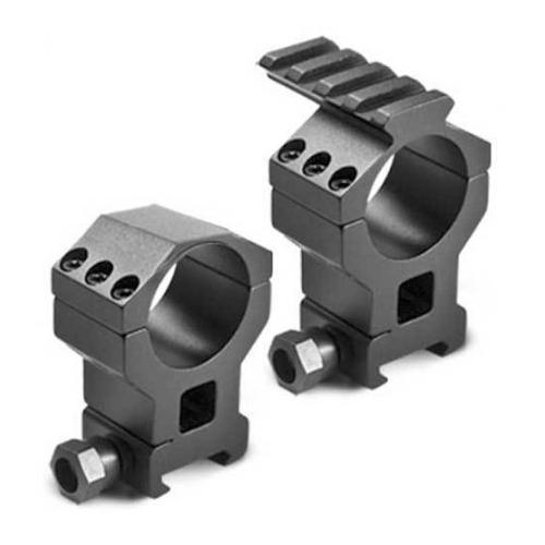 30mm w/ 1" Insert, High Tactical Rings w/built-in Picatinny Rail, See-through Picatinny Base, Includes 1 detachable rail top (rail length measures 1.75 inches), 1 standard top and 1" inserts