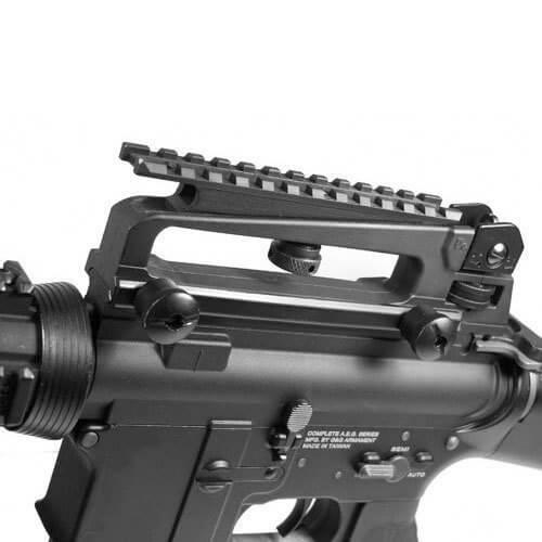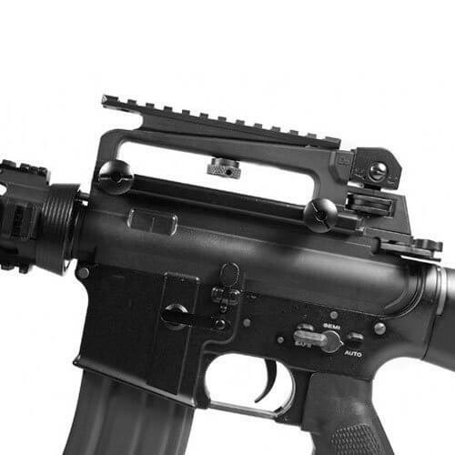U.S. Armed Forces Standard AR-15 and M-16 Mount U.S. Armed Forces Standard AR -15 and M-16 Mount Pair you firearms with additional accessories on to the carry handle with out obstructing the iron sight view. T6 Aluminum construction results in durability and lighter weight while the rugged cross slot bolts secure the bracket to provide extreme rigidity. Carry handle not included.