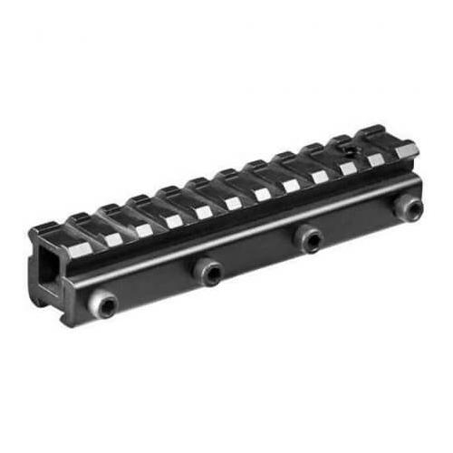 Converts dovetail rail to picatinny/weaver style rail. 1/2" High rise mount.