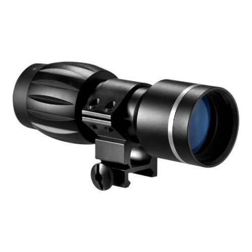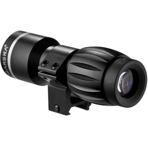 5x Magnifier with Extra High Ring by Barska Works in combination with red dot or electro sight to magnify image,resulting in increased accuracy. Can also be used as a hand held magnifier. 100% Waterproof, fogproof and shockproof. Fully coated optics for crisp clear images.
