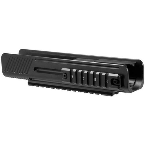 Lower accessory forearm rail system for the Mossberg 500A to attach accessories such as a bipod, flashlight, foregrip or laser. Two additional side rails for attaching more accessories.