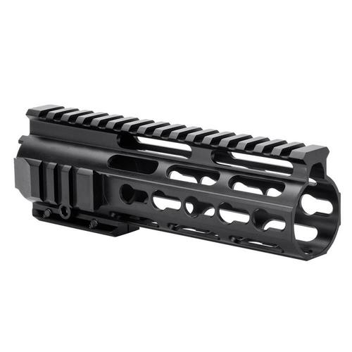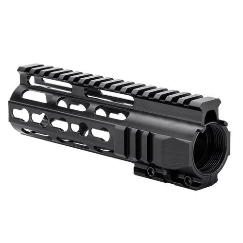The 6.75 inch KeyMod Handguard by Barska is a free floating handguard that utilizes the KeyMod accessory attachment system for increased weight savings, modularity, and ergonomics. These KeyMod slots provide almost limitless combination of mounting points without the extra weight associated with similarly sized Picatinny rails. The KeyMod Slots are located at the 3, 6, and 9 o'clock positions, and the Picatinny top rail has been designed to fit seamlessly with a mil-spec upper receiver. This KeyMod Handguard is ideal for use with low-profile gas blocks on carbine-length gas systems.