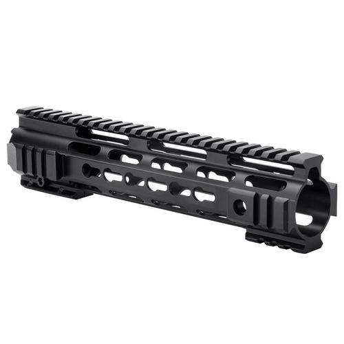 The 10 inch KeyMod Handguard by Barska is a free floating handguard that utilizes the KeyMod accessory attachment system for increased weight savings, modularity, and ergonomics. These KeyMod slots provide almost limitless combination of mounting points without the extra weight associated with similarly sized Picatinny rails. The KeyMod Slots are located at the 3, 6, and 9 o'clock positions, and the Picatinny top rail has been designed to fit seamlessly with a mil-spec upper receiver. This KeyMod Handguard is ideal for use with low-profile gas blocks on carbine, mid, or rifle-length gas systems.