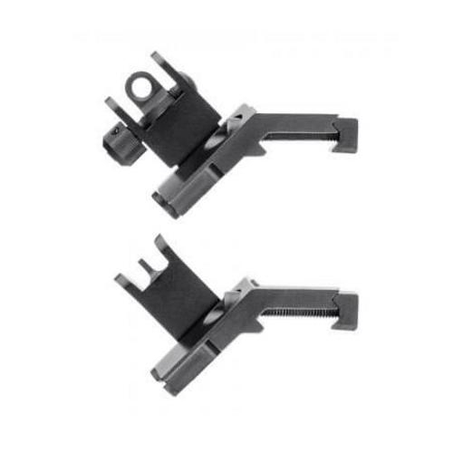 The Flip-Up 45 Degree Offset Sight Set by Barska allow the user to seamlessly switch between the primary optics and these backup sights by rotating the rifle 45 degrees. If a rifle is fitted with a large magnified scope, these offset sights can be used to engage closer targets. They are also ideal as a backup option incase the primary optic system becomes inoperable.
