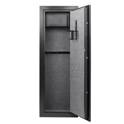 The 7.87 Cubit Foot Digital Keypad Rifle Safe from Barska is a great way to keep rifles and other firearms securely stored while allowing only select users access to the contents in seconds with a pre-registered PIN Code. Only those who know the digital PIN combination will be able to gain access to the safe. In addition to the digital PIN code module, this safe is secured by a three-point dead bolt made of one-inch steel locks. The Digital Keypad Rifle Safe includes an adjustable 14 position rifle rack.
