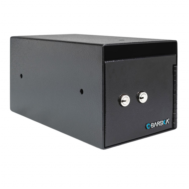 BARSKA Dual Key Depository Safe is a great way to keep cash, checks, and other important items for short periods of time while awaiting pickup. Perfect for cash drops, rent payments, important keys, paperwork, and much more. Mounting hardware and pre-drilled anchor holes for securing on the floor or counter are also included. Gas stations, restaurants, and any other retail business that deals with large volumes of cash can benefit from the security provided by BARSKA Dual Key Depository Safes.