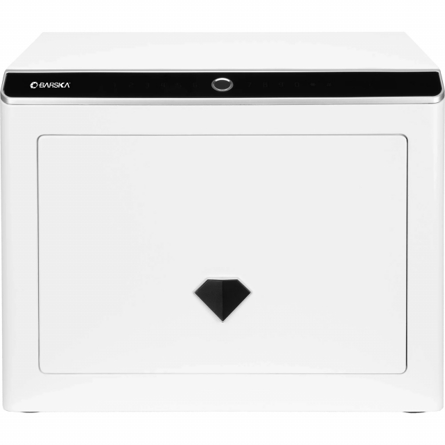 The 'Diamond' 0.92 Cu. ft Touchscreen Biometric Keypad Security Safe by Barska boasts advanced biometric technology along with a LED backlit touchscreen keypad, presented in a sleek, minimalist form factor. The quilted vegan leather interior protects valuables from scratching on hard steel surfaces, and the removable shelving provides flexible storage space for smaller or larger items.