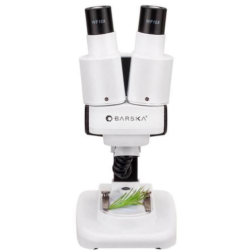 Barska’s new 20x, 50x Student Stereo Microscope provides students with the opportunity to get a close-up look at the surface of larger, more solid specimens. Using two individual 10x magnification eyepieces, this Stereo Microscope is capable of providing enhanced depth-of-field and impressive detail on every sample. Large focusing knobs make it simple to obtain a clear image of the sample, and a bright LED light illuminates the specimen for maximum clarity. Both blank and prepared slides are included with Barska Stereo Microscope, giving the user the option of readily viewing prepared samples, or creating a slide with their own specimen.