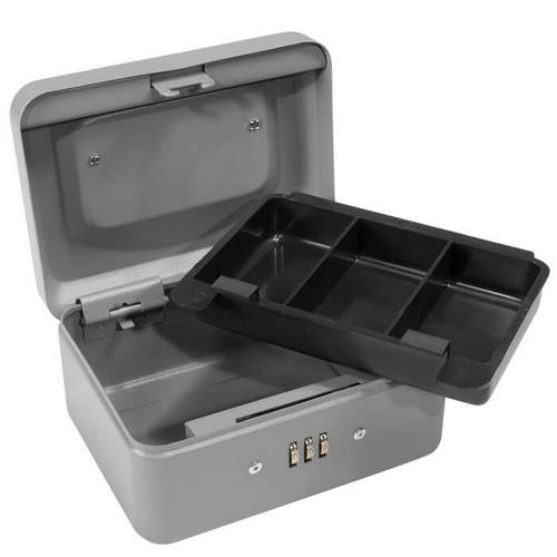 This multi-purpose box is ideal for storing cash, valuables and can be used for storage home and businesses. Features a resettable combination lock for key-less entry perfect for organizations because it allows for multiple user access. Useful recessed fold down carrying handle for portability and storage.